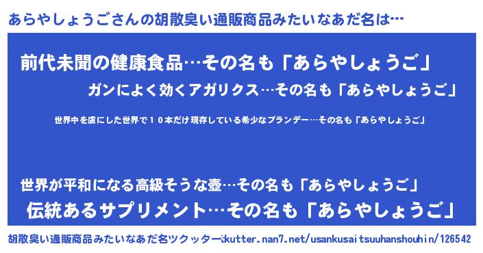 | 意味不明あだ名 | 『住所不定無職あらやしょうご(91歳)』 |