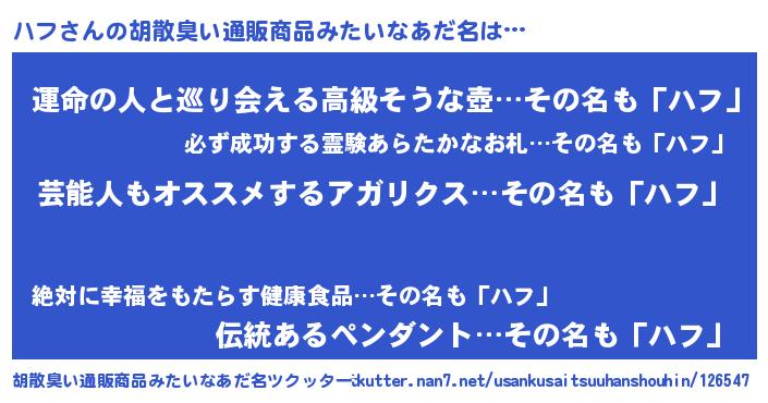 | 意味不明あだ名 | 『自称ハフ』『ハフフォーエバー』 |