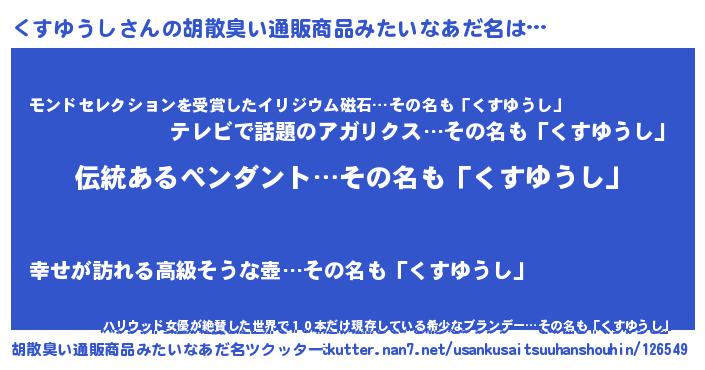 | 意味不明あだ名 | 『とにかく怪しいくすゆうし』 |