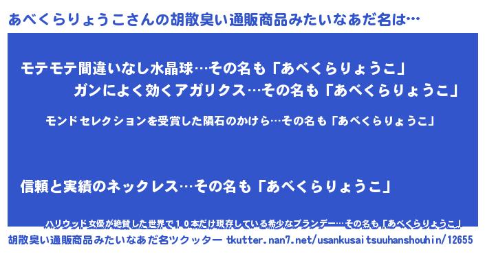 | 意味不明あだ名 | 『眠気覚ましガムあべくらりょうこ味』 |
