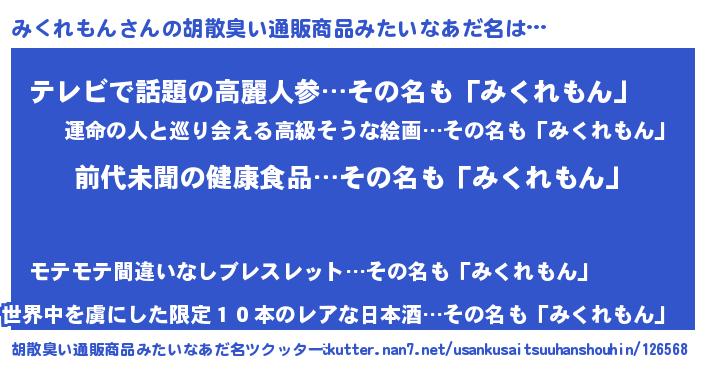 みくれもんさんの胡散臭い通販商品みたいなあだ名をツクッター!