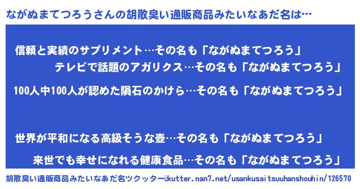ながぬまてつろうさんの胡散臭い通販商品みたいなあだ名をツクッター!