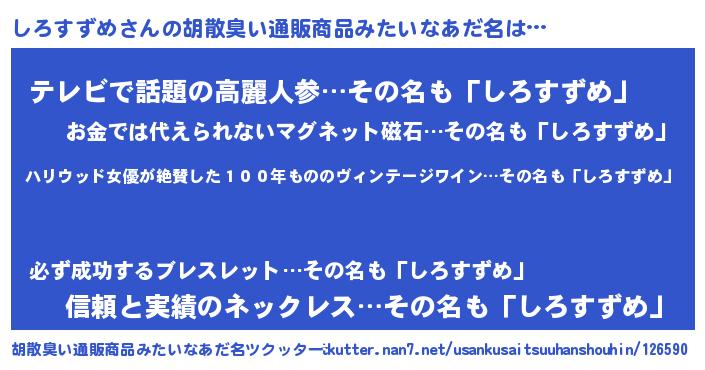 | 意味不明あだ名 | 『住所不定無職しろすずめ(10歳)』 |