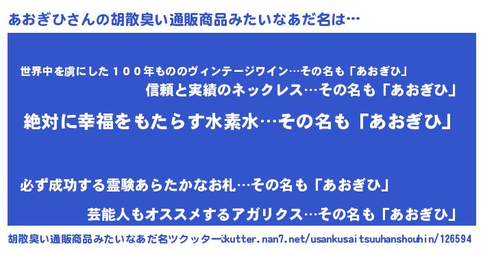 | 意味不明あだ名 | 『永久保存あおぎひ』『自称あおぎひ』 |