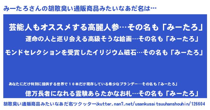 | ヒーロー風カッコイイあだ名 | 『慈愛の使者みーたろ』『仮面ミーダー』 |