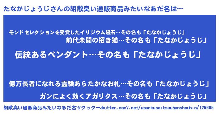 | ヘコむあだ名 | 『たなぷりん』『たなかじょうじ(震え声)』 |