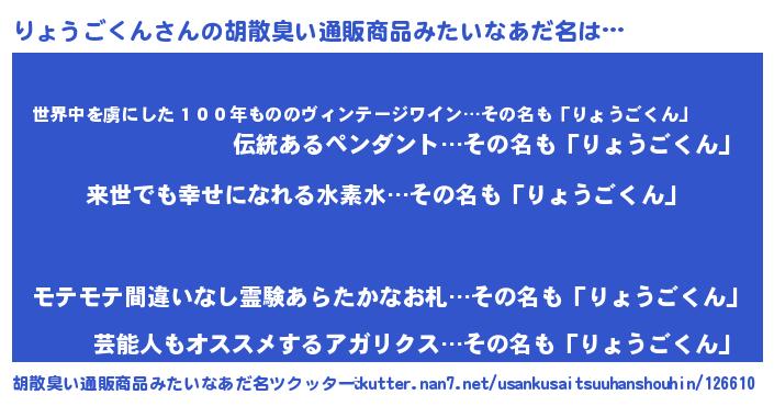 | ヘコむあだ名 | 『りょうごくん(遠い目)』『りょ太郎』 |