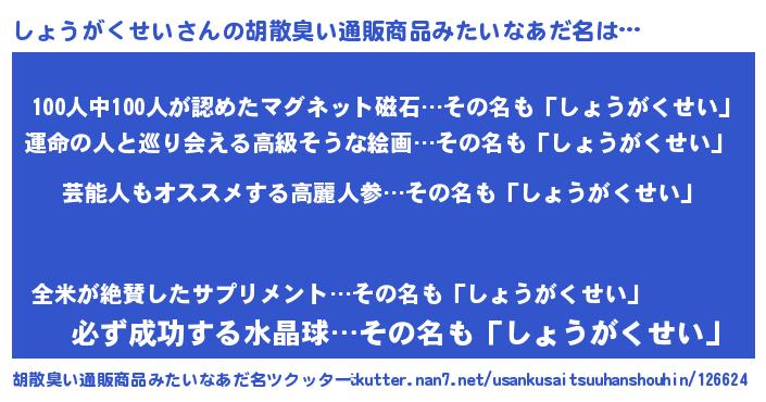 | ヘコむあだ名 | 『しょふぇ~』『牛乳』『しょ太郎』 |