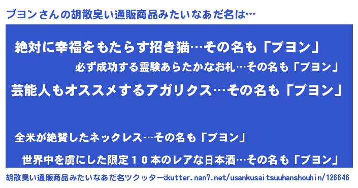 | 意味不明あだ名 | 『ニラ科ブヨン属』『自称ブヨン』 |