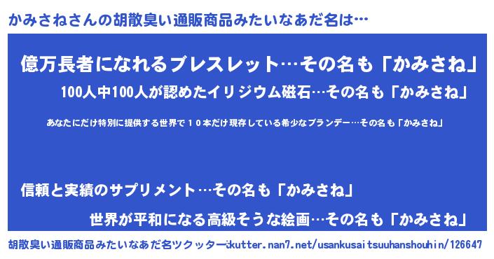 | ヘコむあだ名 | 『かみもー』『酢こんぶ』『かみお』 |