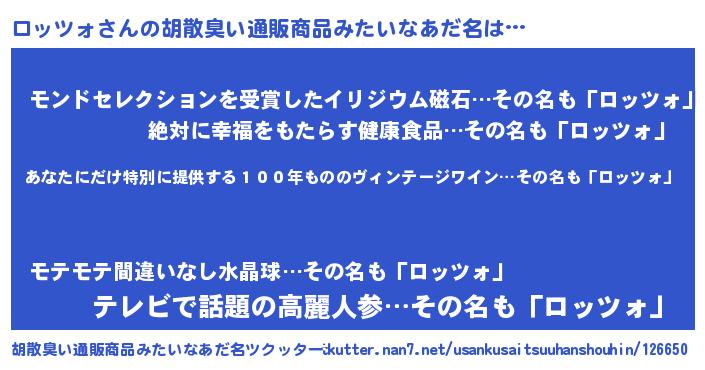 | ヘコむあだ名 | 『ロッツォ(小並感)』『ロッにゅー』 |