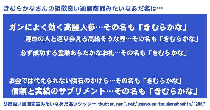 | 肩書あだ名 | 『きむらかな上級大将』『きむらかな社長』 |