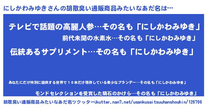 | 肩書あだ名 | 『にしかわみゆき中佐』 |