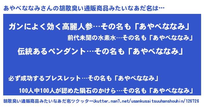 | 伝説のあだ名 | 『解き放たれた遊び人あやべななみ』 |