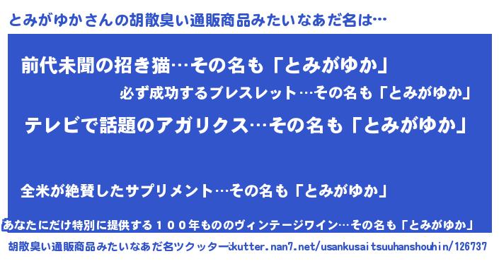 | ヘコむあだ名 | 『とみがゆか(笑)』『とみにー』 |