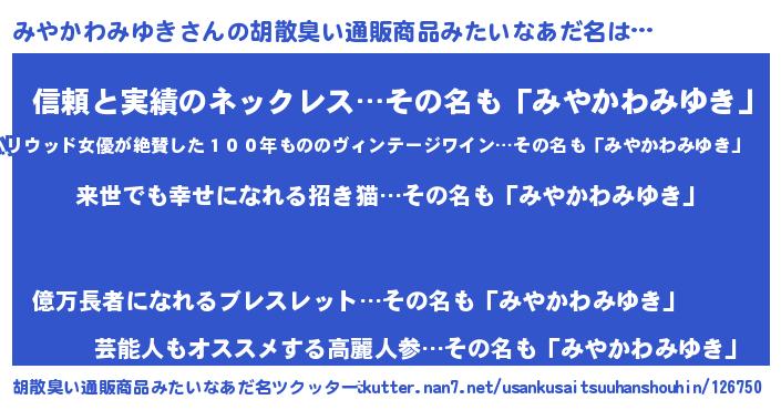| 意味不明あだ名 | 『永久保存みやかわみゆき』 |