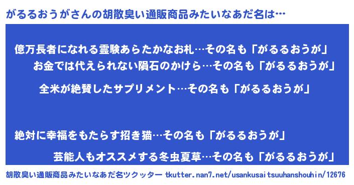 | ヘコむあだ名 | 『がるお』『がるもー』『なまこ酢』 |