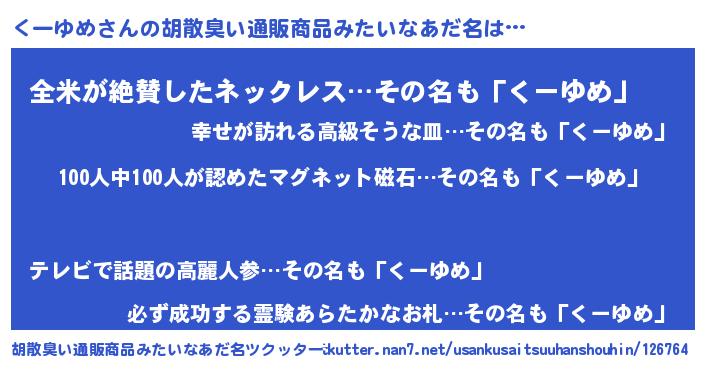 | ヒーロー風カッコイイあだ名 | 『正義の使者くーゆめ』『天弓騎士クー』 |