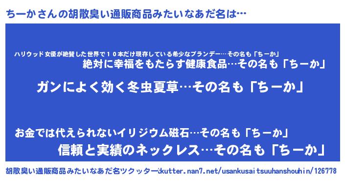 | 意味不明あだ名 | 『自称ちーか』『住所不定無職ちーか(84歳)』 |