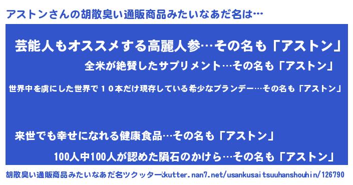 | 意味不明あだ名 | 『住所不定無職アストン(86歳)』 |