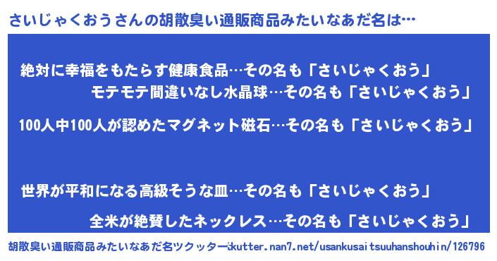 | ヘコむあだ名 | 『さいじゃくおう(笑)』『さいお』 |