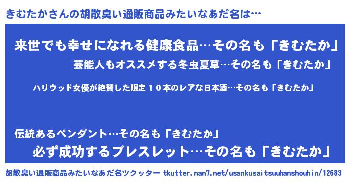 | ヘコむあだ名 | 『きむたか(爆)』『きむにー』 |
