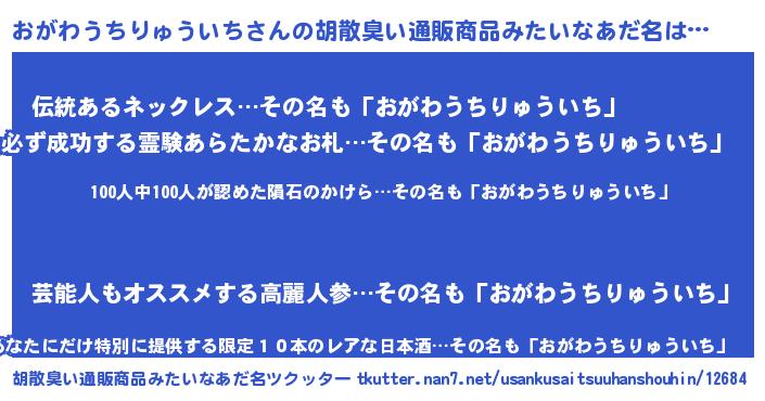 | 卒業式 | おがわうちりゅういちさんが卒業証書を受け取る時に起こった出来事『 おがわうちりゅういちさんを好きだった在校生が3人泣き崩れた』 |
