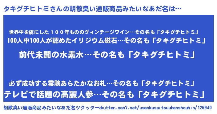 | 意味不明あだ名 | 『永久保存タキグチヒトミ』 |