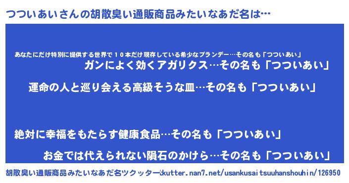 | 意味不明あだ名 | 『つついあいフォーエバー』 |
