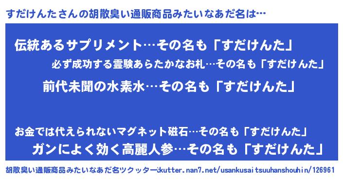 | 意味不明あだ名 | 『永久保存すだけんた』『自称すだけんた』 |