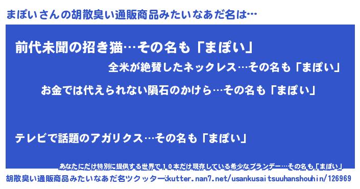 | ヘコむあだ名 | 『まぽい(震え声)』『まぽ太郎』 |