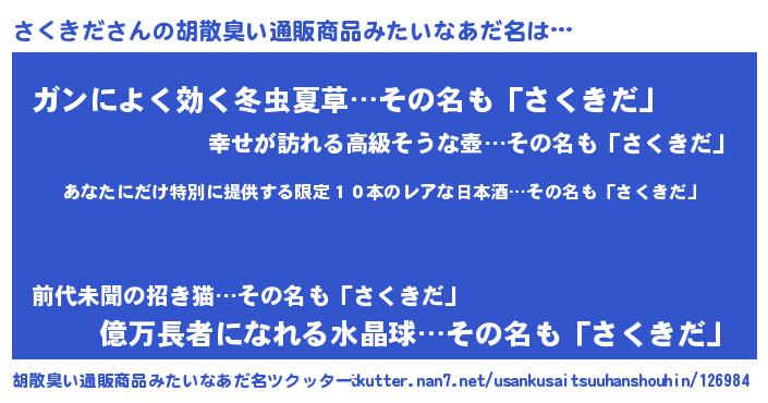 | 意味不明あだ名 | 『住所不定無職さくきだ(47歳)』 |