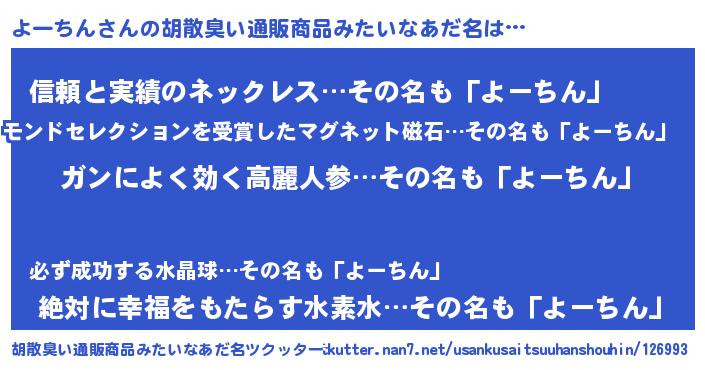 | ヘコむあだ名 | 『よーを』『よーちん(爆)』『豆乳』 |
