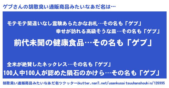 | 意味不明あだ名 | 『永久保存ゲブ』『ペロリンゲブ』 |
