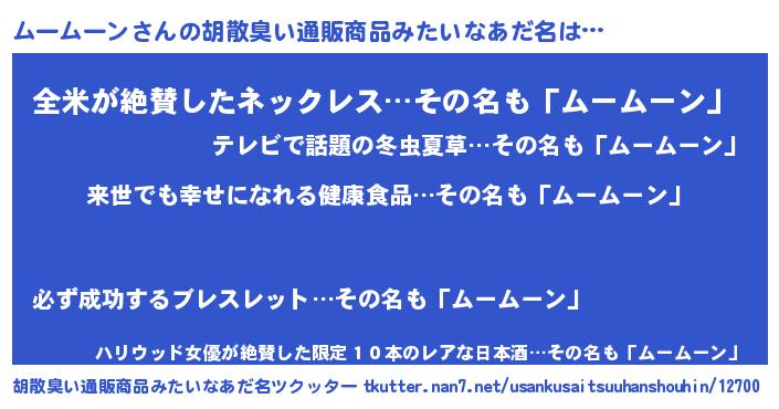 | ヘコむあだ名 | 『ムームーン(爆)』『ムーっ子』 |