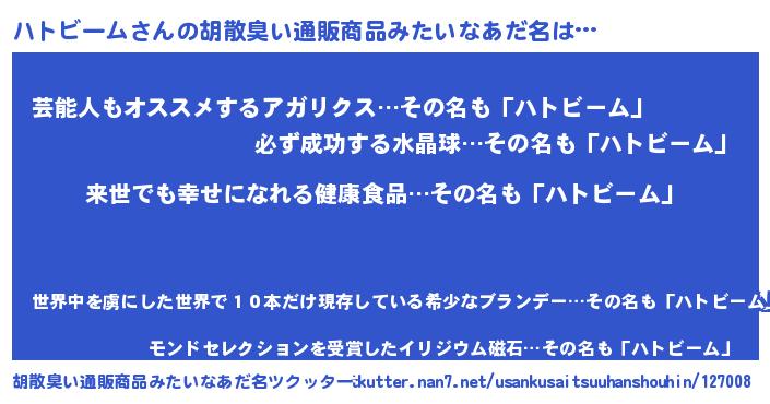 | ヘコむあだ名 | 『ハトビーム(笑)』『ハトにゅー』 |