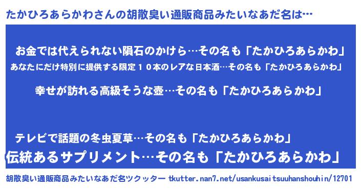| 伝説のあだ名 | 『秘められし忍者たかひろあらかわ』 |