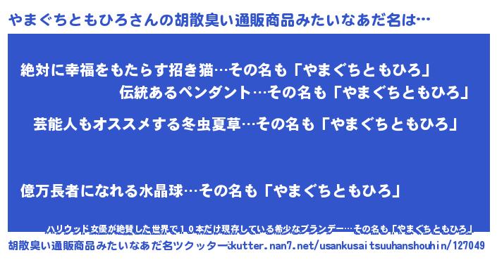 | 意味不明あだ名 | 『自称やまぐちともひろ』 |