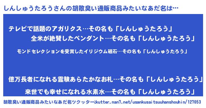 | ヘコむあだ名 | 『しんしゅうたろう(笑)』『しんを』 |