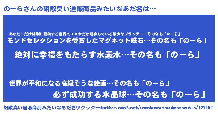 | ヘコむあだ名 | 『のーら(震え声)』『のーにー』 |