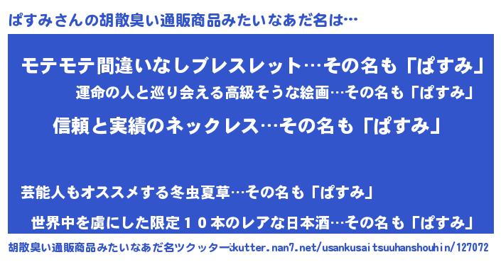 | 意味不明あだ名 | 『とにかく怪しいぱすみ』 |