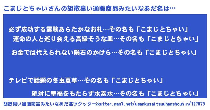 こまじとちゃいさんの胡散臭い通販商品みたいなあだ名をツクッター!