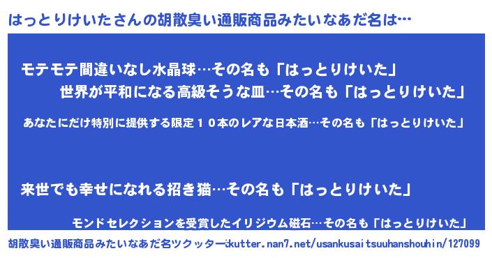 | 欧米人風あだ名 | 『ダレノガレはっとりけいた』 |