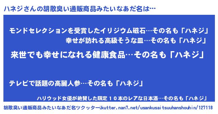ハネジさんの胡散臭い通販商品みたいなあだ名をツクッター!