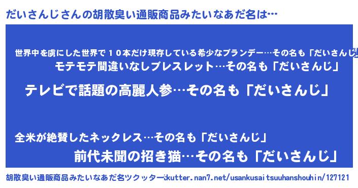| 意味不明あだ名 | 『自称だいさんじ』『永久保存だいさんじ』 |