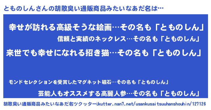 | ヒーロー風カッコイイあだ名 | 『ネオトモノシン』『黄金騎士トモ』 |