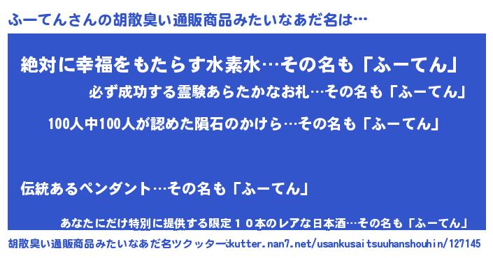 | ヘコむあだ名 | 『ふーてん(遠い目)』『ふーもー』 |
