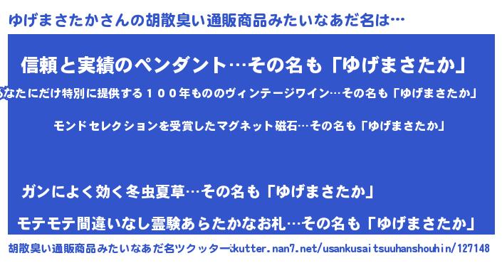 | ヒーロー風カッコイイあだ名 | 『慈愛の使者ゆげまさたか』 |