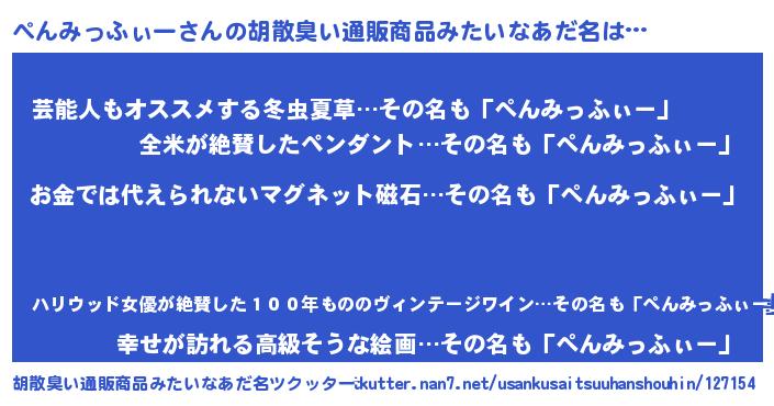 | ヒーロー風カッコイイあだ名 | 『友情の使者ぺんみっふぃー』 |