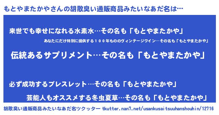| 意味不明あだ名 | 『とにかく怪しいもとやまたかや』 |